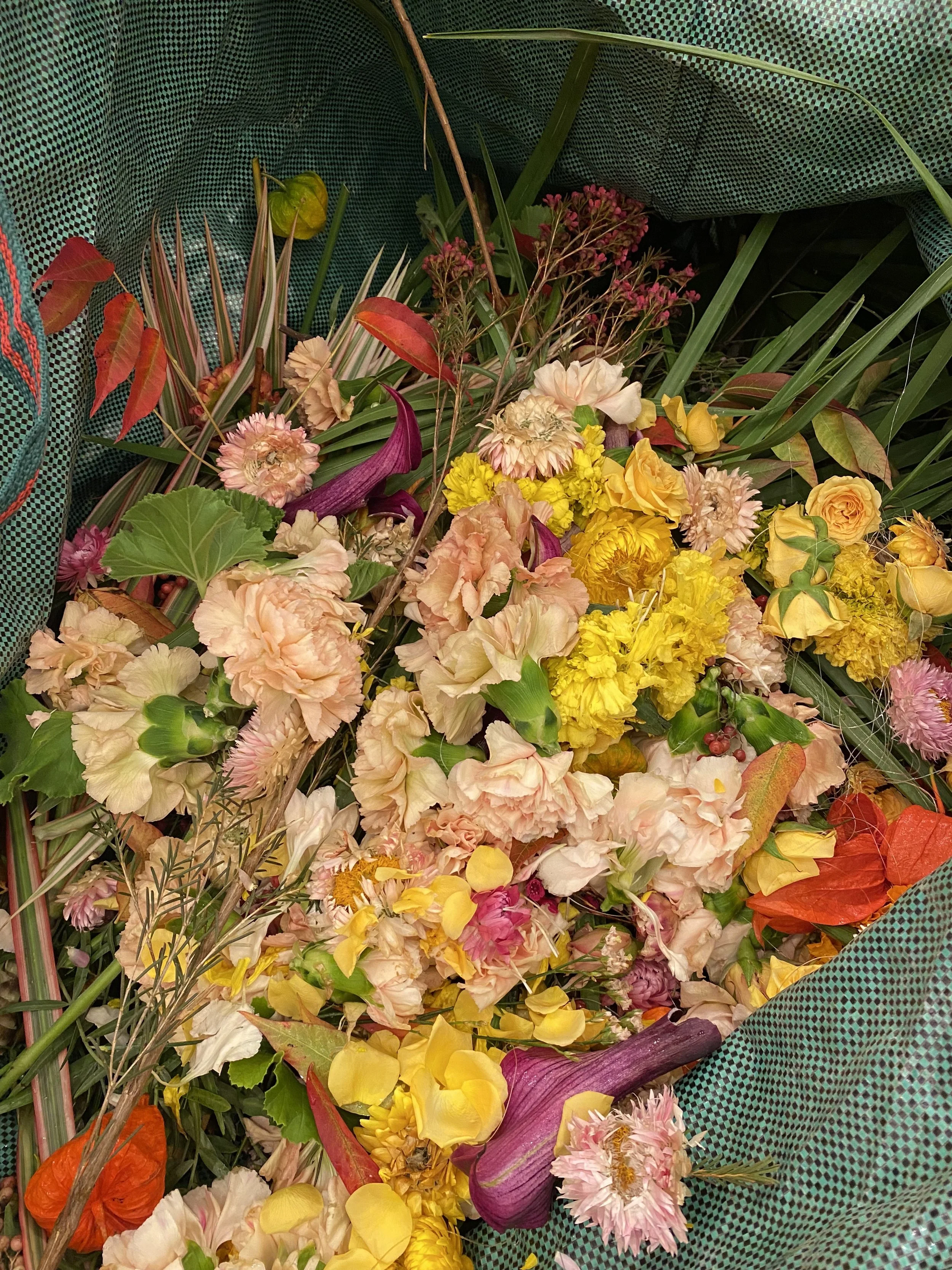 Our society tries to downplay and hide what labor costs. I’ve tried to do the opposite by highlighting what labor costs and paying people a living wage. I can’t say it’s felt scary to talk about. A lot of my confidence has come from educating myself and really digging into my own values. I suppose it also comes from a deeper knowledge that the shift I’m pushing towards with floral and event sustainability and labor cost awareness is needed. The reason I named the company Garbage Goddess was to put the word “garbage,” the thing we’re all trying to hide from in every literal and figurative sense, smack in everyone’s face. If we look right at it, we can’t ignore it. I’m still figuring it out and tweaking things internally, but I have real trust that the work we’re doing is critically important. I believe we can really make a substantial change to this industry during a time when it’s truly irresponsible to ignore the climate crisis we’re in.